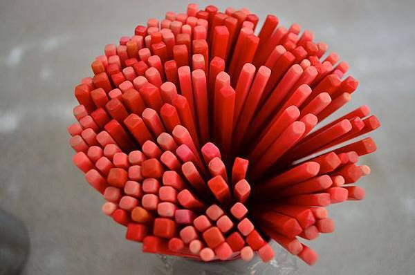桌上放著很傳統的塑膠紅筷,說真的這種筷子正在消失當中,免洗筷逐漸取代。