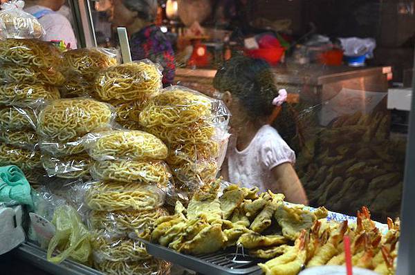 市場裡很多阿罵帶孫子出來,阿姨怕小孩子亂拿亂戳危險,所以很貼心的放在櫃子上頭以免小孩受傷。