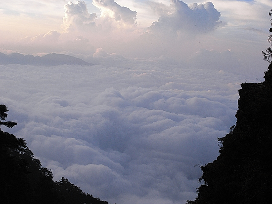 左邊懸崖溢出滿滿雲海,阿儀說這是她第一次看見如此雲海,對我來說,這大自然的美景,無論是