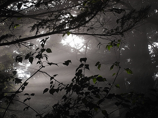 意間抬頭一看,薄紗渺然披上林間,樹很高,霧很濃,而我是如此微小不足道。